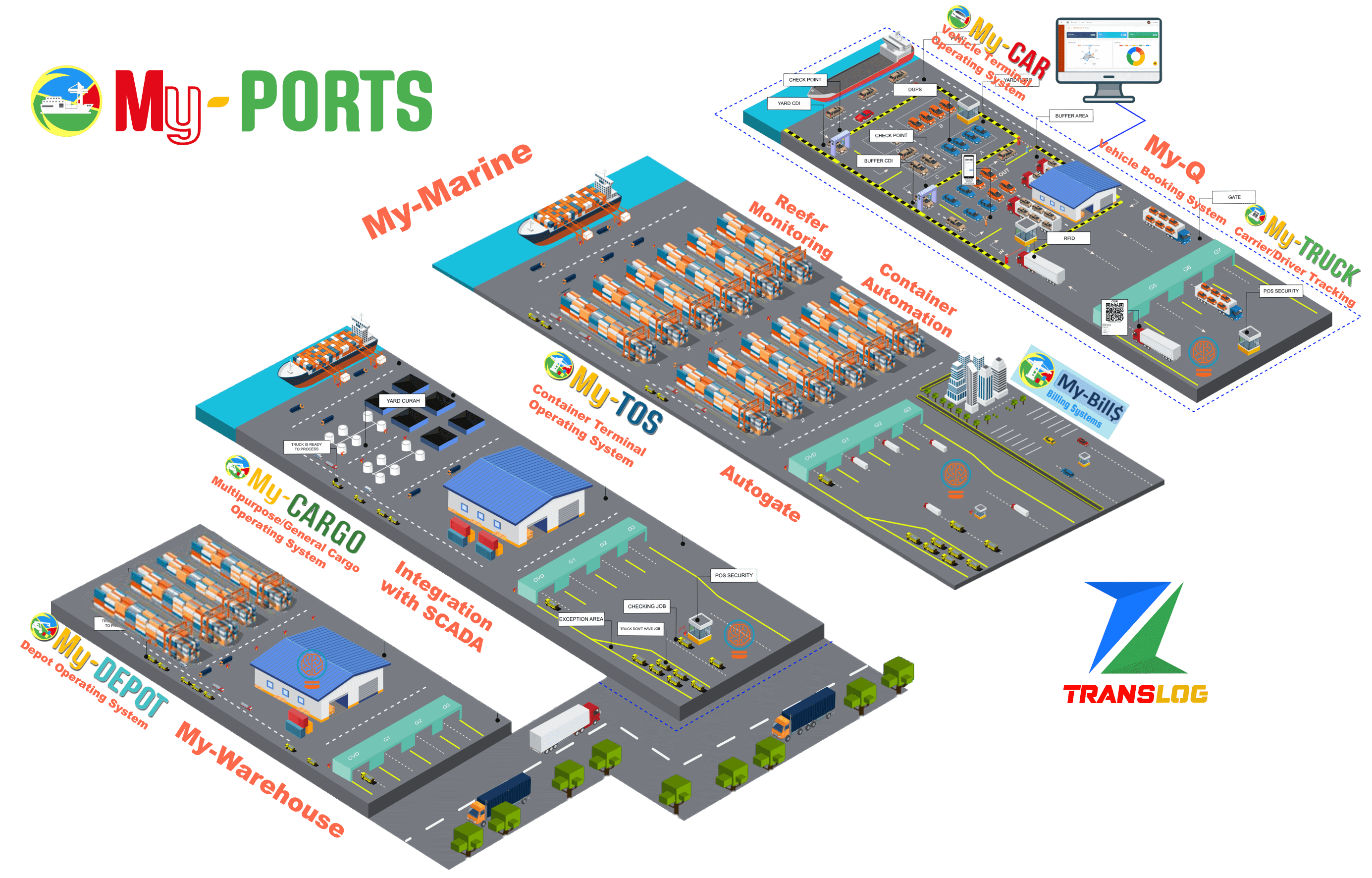 Supports Container Terminal, Multi-purpose Terminal, Car Terminal, Depot, & Warehousing